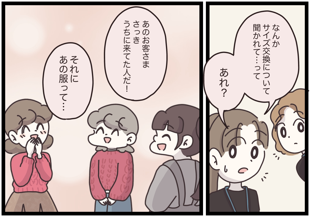 スポンサーリンク おすすめ記事『アパレる』144話:いちごを乗せるお仕事【コラボアイテム】あったか伸洗パンツ『アパレる』114話:店長からの呼び出し『アパレる』099話:フワ様の謎(前編)『アパレる』091話:ツツジさんの顧客さま 『マイカのアパレル日記』111話:右肩さがりのDX店舗…このままじゃクビ? マイカのアパレル日記 2025.11.17 スポンサーリンク 前回のお話はこちら(外部リンク) モヤモヤを他店スタッフのマイカちゃんに打ち明けたお客さま。その様子を見ていたのは…【マイカのアパレル日記 by ぼのこ】 - Woman type[ウーマンタイプ] | 女の転職typeDX店舗で購入したセーターがしっくり来なかったお客さま。「他店のスタッフだけど…」とマイカちゃんにモヤモヤを打ち明けたところ…? ブログやInstagramで大人気のクリエイター・ぼのこさんによる漫画連載『マイカのアパレル日記』。28歳のアパレル販売員・マイカちゃんの成長ストーリーです。 広告 続きはウーマンタイプで公開中! 売上が右肩下がりのDX店舗。他店に相談するお客さまを見たスタッフたちは…【マイカのアパレル日記 by ぼのこ】 - Woman type[ウーマンタイプ] | 女の転職type日に日に落ちていく売上──。焦るDX店舗のスタッフたちがふと向かいのお店を見ると、対応できなかったお客さまがマイカちゃんたちに相談していて……。ブログやInstagramで大人気のクリエイター・ぼのこさんによる漫画連載『マイカのアパレル日記』。28歳のアパレル販売員・マイカちゃんの成長ストーリーです。 woman typeで続きを読む 「マイカのアパレル日記」過去のお話はこちら 過去のお話を無料で一気読み! 『アパレる』まとめ集はこちら 書籍のご紹介 女社会の歩き方ぼのこ | 2020年04月23日発売 『女社会の歩き方』(紙・電子書籍あり) 作者ぼのこの実体験をもとにしたコミックエッセイです。 『女社会の歩き方』はめちゃコミでも読めます! 【無料試し読みあり】女社会の歩き方 - めちゃコミックはてなブログ、インスタグラムなどで10万人(2020年4月時点)が共感! オンナだらけの職場ならではの「めんどくさい」体験をつづったコミックエッセイがついに書籍化。子ども服ブ... ↑やすこ先生監修・接客なるほど講座