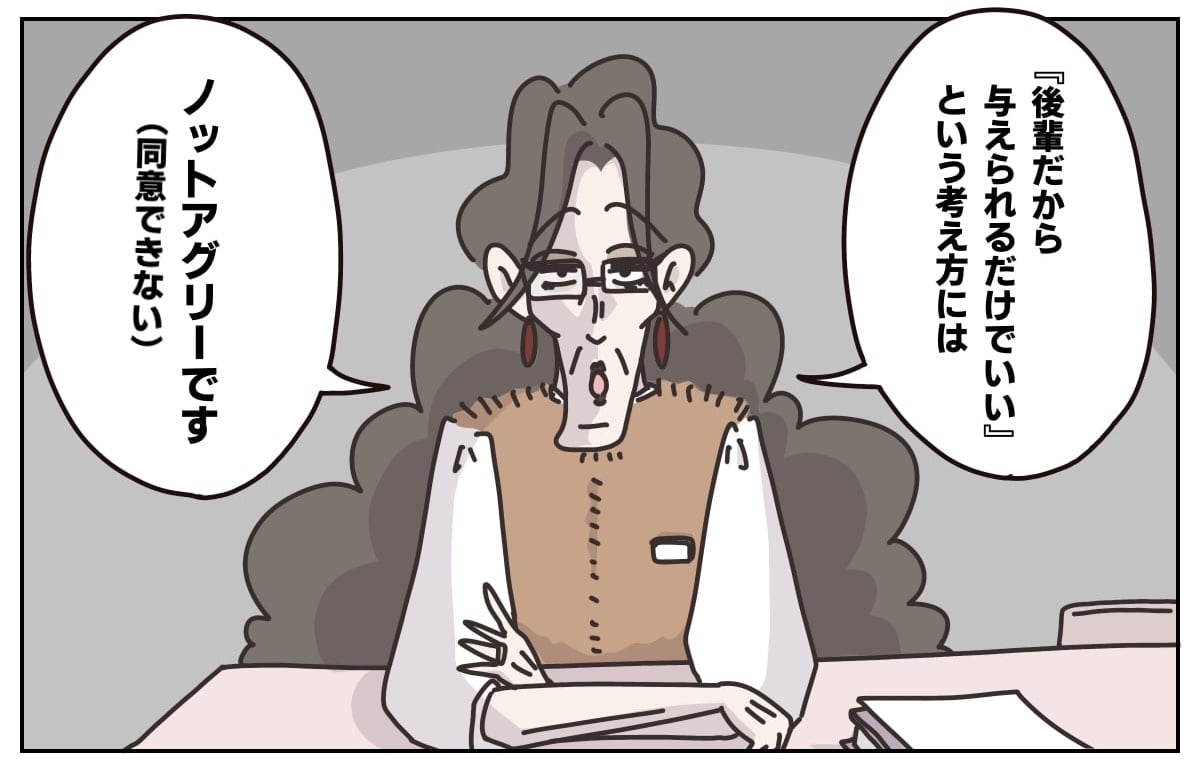 (たぶん、「長々くどくどと、とめどなく話してしまう先輩」と「説明のしかたが下手すぎるから教育係を変えてもらいたい後輩」ていう話なので漫画では端折られてるんでしょうけど、
