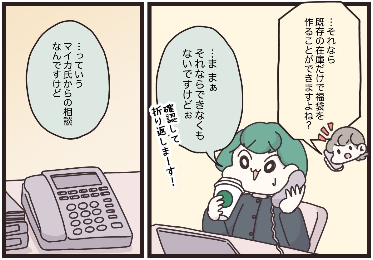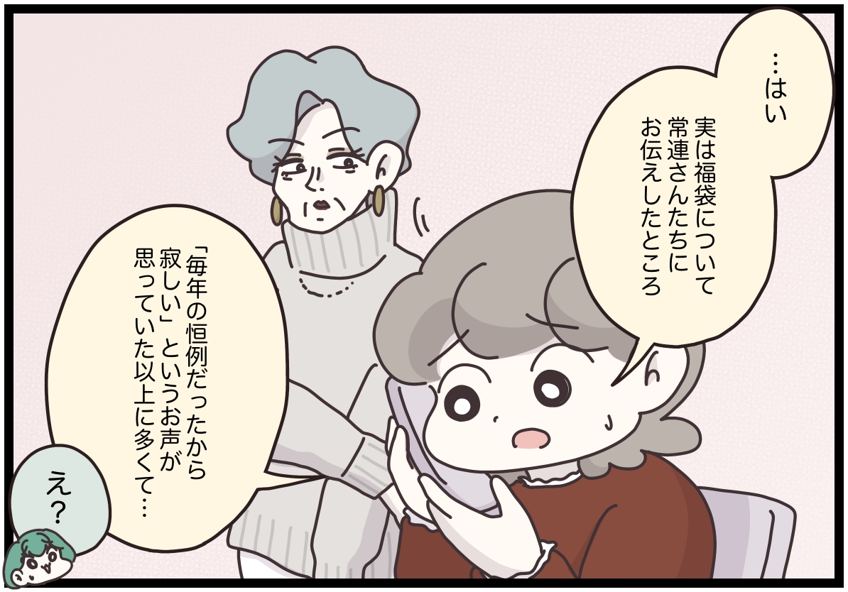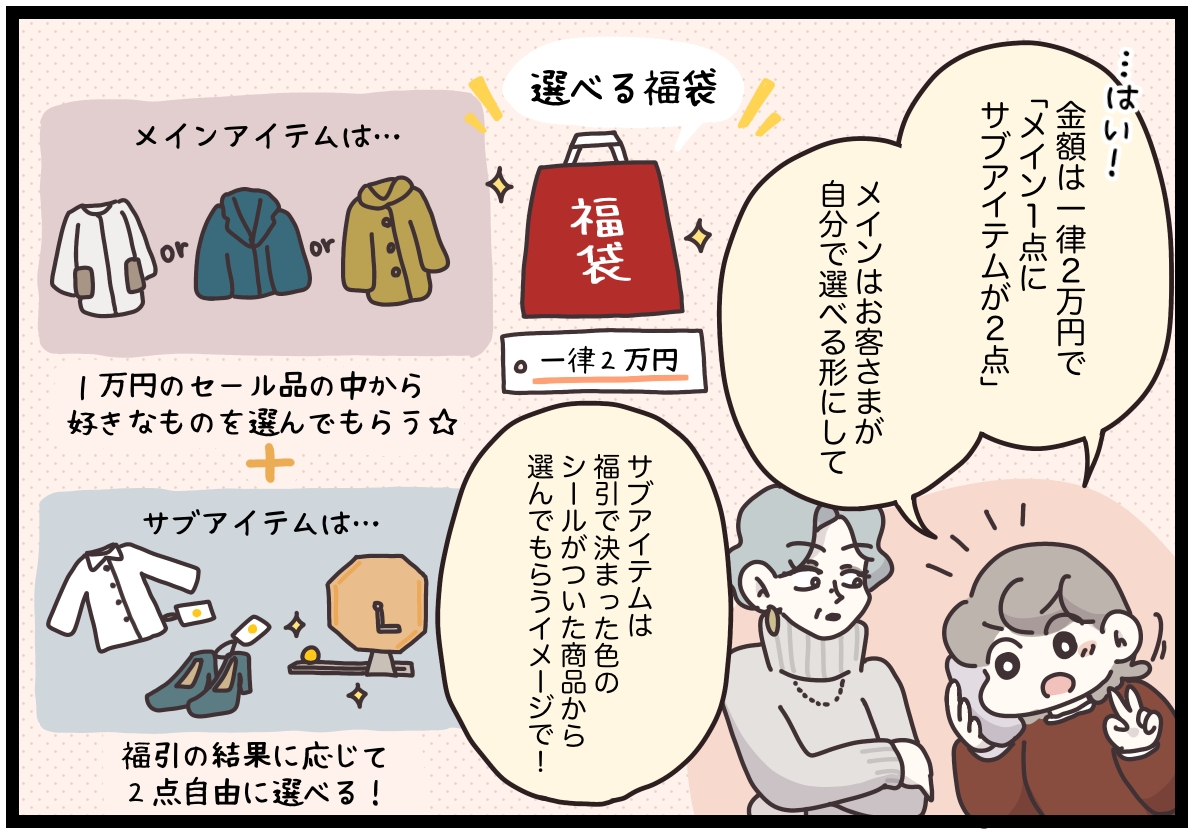 スポンサーリンク おすすめ記事『アパレる』144話:いちごを乗せるお仕事【コラボアイテム】あったか伸洗パンツ『アパレる』114話:店長からの呼び出し『アパレる』099話:フワ様の謎(前編)『アパレる』091話:ツツジさんの顧客さま 『マイカのアパレル日記』115話:現場の声がカタチになった瞬間 マイカのアパレル日記 2026.01.15 スポンサーリンク 前回のお話はこちら(外部リンク) 福袋の廃止は、時代に合わせた変化?モヤるマイカはある光景を目撃して…【マイカのアパレル日記 by ぼのこ】 - Woman type[ウーマンタイプ] | 女の転職type売上低下により今年は福袋が廃止の方向に。寂しがるお客さまの声も届くけれど、仕方ないのか……。モヤモヤするマイカちゃんはある光景を目撃して…? 仕事でブログやInstagramで大人気のクリエイター・ぼのこさんによる漫画連載『マイカのアパレル日記』。28歳のアパレル販売員・マイカちゃんの成長ストーリーです。 広告 続きはウーマンタイプで公開中! 反対の声が殺到するも「福袋廃止」は決定事項…マイカが編み出した代替案とは【マイカのアパレル日記 by ぼのこ】 - Woman type[ウーマンタイプ] | 女の転職type「福袋をなくさないで」の声が続々と届くも、本社の決定事項……。そこでマイカちゃんが編み出した代替案とは。 仕事でブログやInstagramで大人気のクリエイター・ぼのこさんによる漫画連載『マイカのアパレル日記』。28歳のアパレル販売員・マイカちゃんの成長ストーリーです。 woman typeで続きを読む 「マイカのアパレル日記」過去のお話はこちら 過去のお話を無料で一気読み! 『アパレる』まとめ集はこちら 書籍のご紹介 女社会の歩き方ぼのこ | 2020年04月23日発売 『女社会の歩き方』(紙・電子書籍あり) 作者ぼのこの実体験をもとにしたコミックエッセイです。 『女社会の歩き方』はめちゃコミでも読めます! 【無料試し読みあり】女社会の歩き方 - めちゃコミックはてなブログ、インスタグラムなどで10万人(2020年4月時点)が共感! オンナだらけの職場ならではの「めんどくさい」体験をつづったコミックエッセイがついに書籍化。子ども服ブ... ↑やすこ先生監修・接客なるほど講座