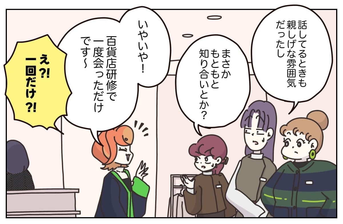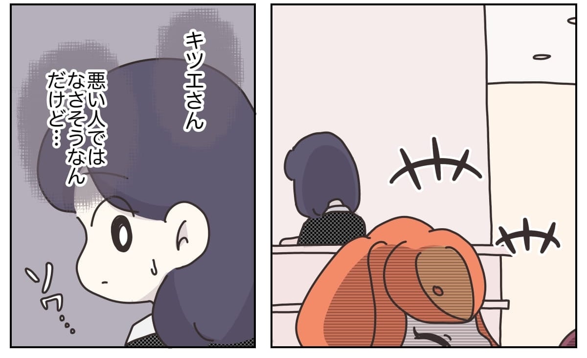 スポンサーリンク おすすめ記事『アパレる』144話:いちごを乗せるお仕事【コラボアイテム】あったか伸洗パンツ『アパレる』114話:店長からの呼び出し『アパレる』099話:フワ様の謎(前編)『アパレる』091話:ツツジさんの顧客さま 『アパレる』289話:なんとなく、違和感 アパレる 2026.01.27 スポンサーリンク 第一話から読む 『アパレる』001話【アパレル漫画】仕事や人間関係に悩める人へ、主人公「桜木春子」の人間的成長を描いた新連載漫画。 前回のお話はこちら 『アパレる』288話:職場のムードメーカー 広告 広告 あとがき なんとあのマネージャーまでとも親しげに会話するキツエさん。その脅威のコミュニケーション能力に、先輩スタッフたちも驚きを隠せません。 明るく親しみやすい彼女を歓迎する空気が広がる一方で、ただひとり、春子だけは妙な違和感を覚えているようで──── 次回へ続きます! ※このお話はフィクションです。登場する人物・団体・名称等は架空であり、実在のものとは関係ありません。 続きのお話は近日公開! 更新のお知らせはNAPBIZ公式アプリより ⭐️お気に入り登録で通知が届きます⭐️ Kindleでまとめ読み! 「アパレる」全巻無料はこちら 広告 コミルプからも読めます! 過去のお話を無料で一気読み! Kindleで『アパレる』を読む コミルプで『アパレる』を読む こちらもおすすめ woman typeで連載中!『マイカのアパレル日記』 ▼続きはこちら 反対の声が殺到するも「福袋廃止」は決定事項…マイカが編み出した代替案とは【マイカのアパレル日記 by ぼのこ】 - Woman type[ウーマンタイプ] | 女の転職type「福袋をなくさないで」の声が続々と届くも、本社の決定事項……。そこでマイカちゃんが編み出した代替案とは。 仕事でブログやInstagramで大人気のクリエイター・ぼのこさんによる漫画連載『マイカのアパレル日記』。28歳のアパレル販売員・マイカちゃんの成長ストーリーです。 書籍のご紹介 女社会の歩き方ぼのこ | 2020年04月23日発売 『女社会の歩き方』(紙・電子書籍あり) 作者ぼのこの実体験をもとにしたコミックエッセイです。 『女社会の歩き方』はめちゃコミでも読めます! 【無料試し読みあり】女社会の歩き方 - めちゃコミックはてなブログ、インスタグラムなどで10万人(2020年4月時点)が共感! オンナだらけの職場ならではの「めんどくさい」体験をつづったコミックエッセイがついに書籍化。子ども服ブ... ↑やすこ先生監修・接客なるほど講座